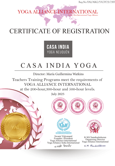 → Certificado avalado por Casa India Yoga y Yoga Alliance India.